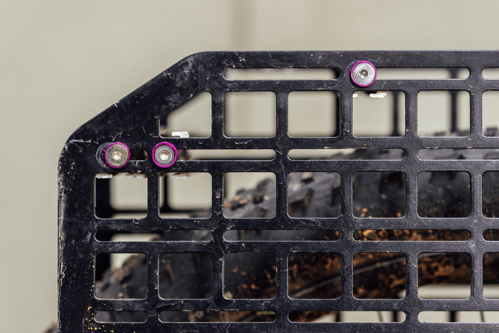 - Bolt the Molle Boards to the Rear Frame Mounts. Keep slightly loose on both sides (1-2 threads showing).